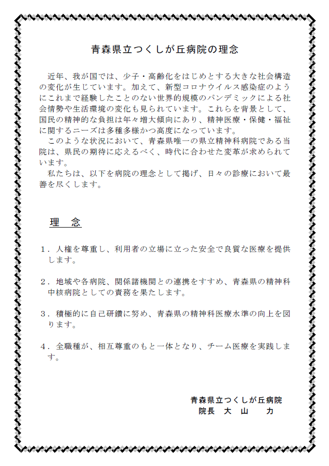 青森県立つくしが丘病院の理念