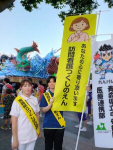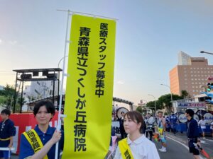 令和7年8月3日(日)と6日(水)の2日間、県立中央病院の面々とともに、つくしが丘病院としては初めて県庁ねぶたに参加しました。